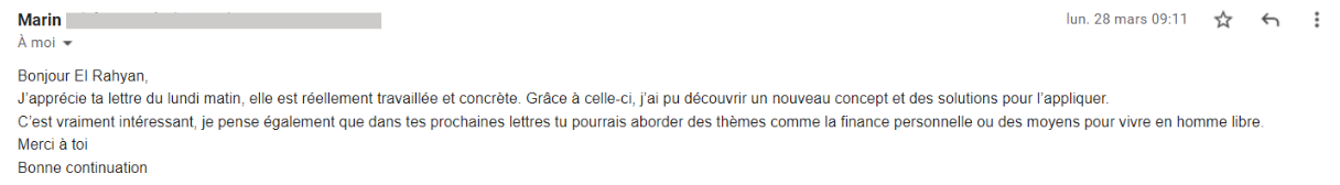 Tous les lundis matin, un nouvel email fraîchement rédigé sans aucune censure